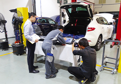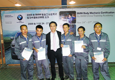 郑州交通技师学院、杭州交通技师学院等十多所院校特聘专业建 设指导专家,为汽车行业品牌玛莎拉蒂、保时捷、宝马、奔驰、 奥迪、林肯、捷豹路虎、克莱斯勒等品牌厂家认证培训师与认证 裁判,获得美国 ICAR 铝合金焊接与维修资质,从事车身维修专 业20余年。